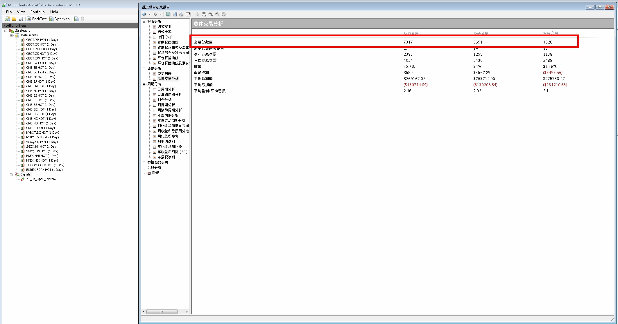 老方法,講過很多次,大數法則,大數法則,大數法則。要驗證一個概念的時候先建立大量的(獨立)樣本(事件),直接把我們以前測試用的均線策略再拿出來跑,不針對特定商品最佳化參數。