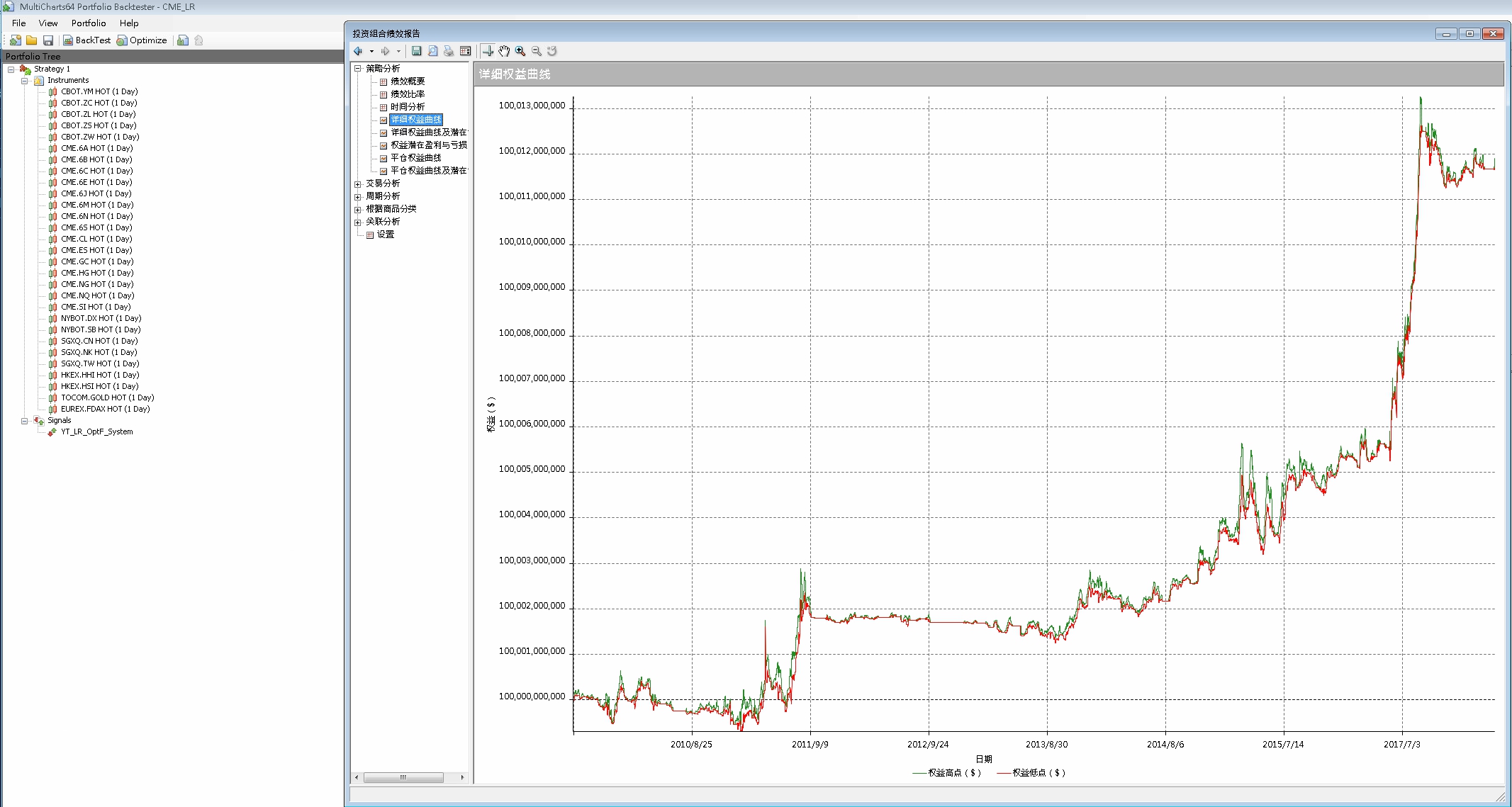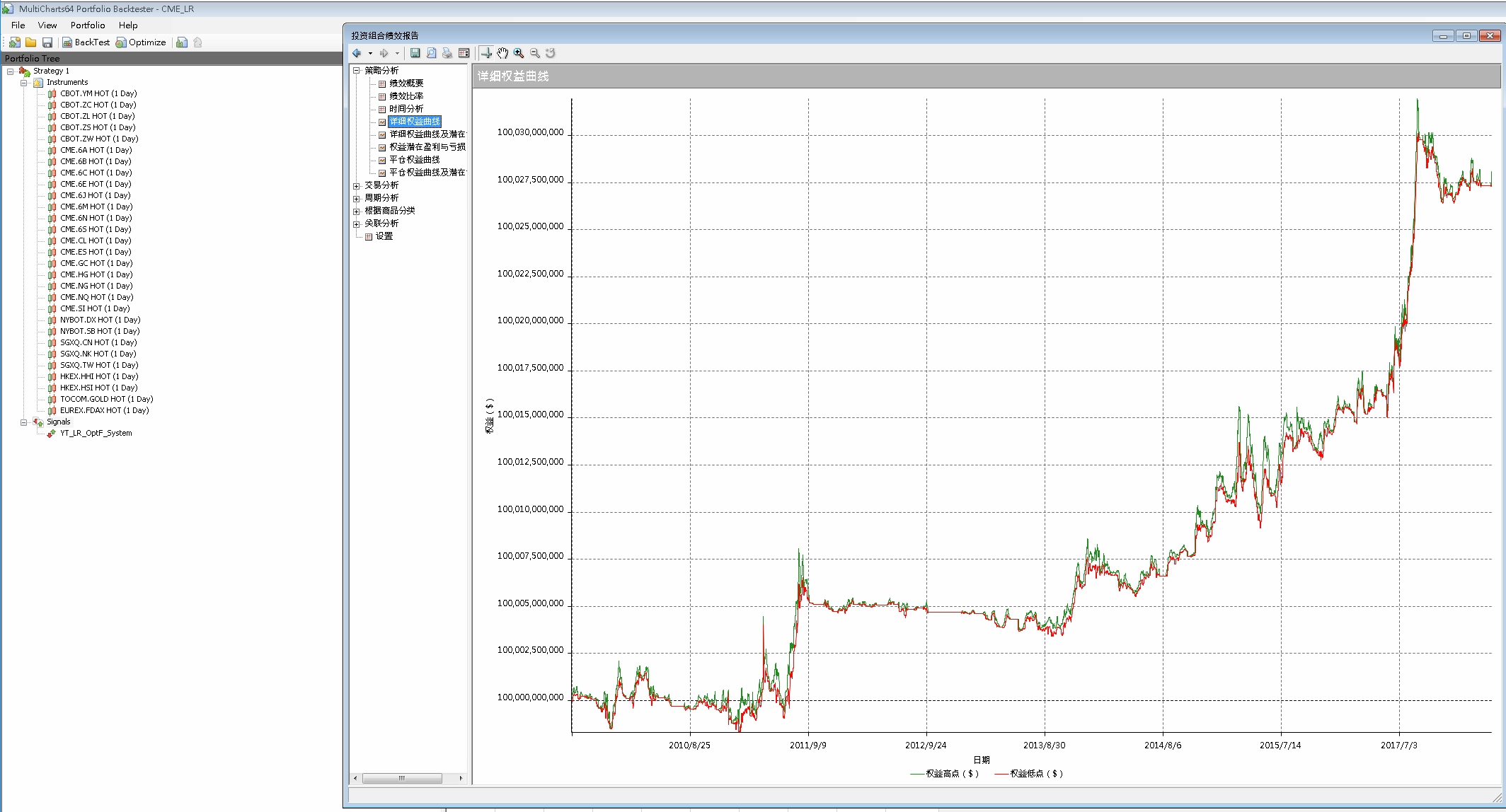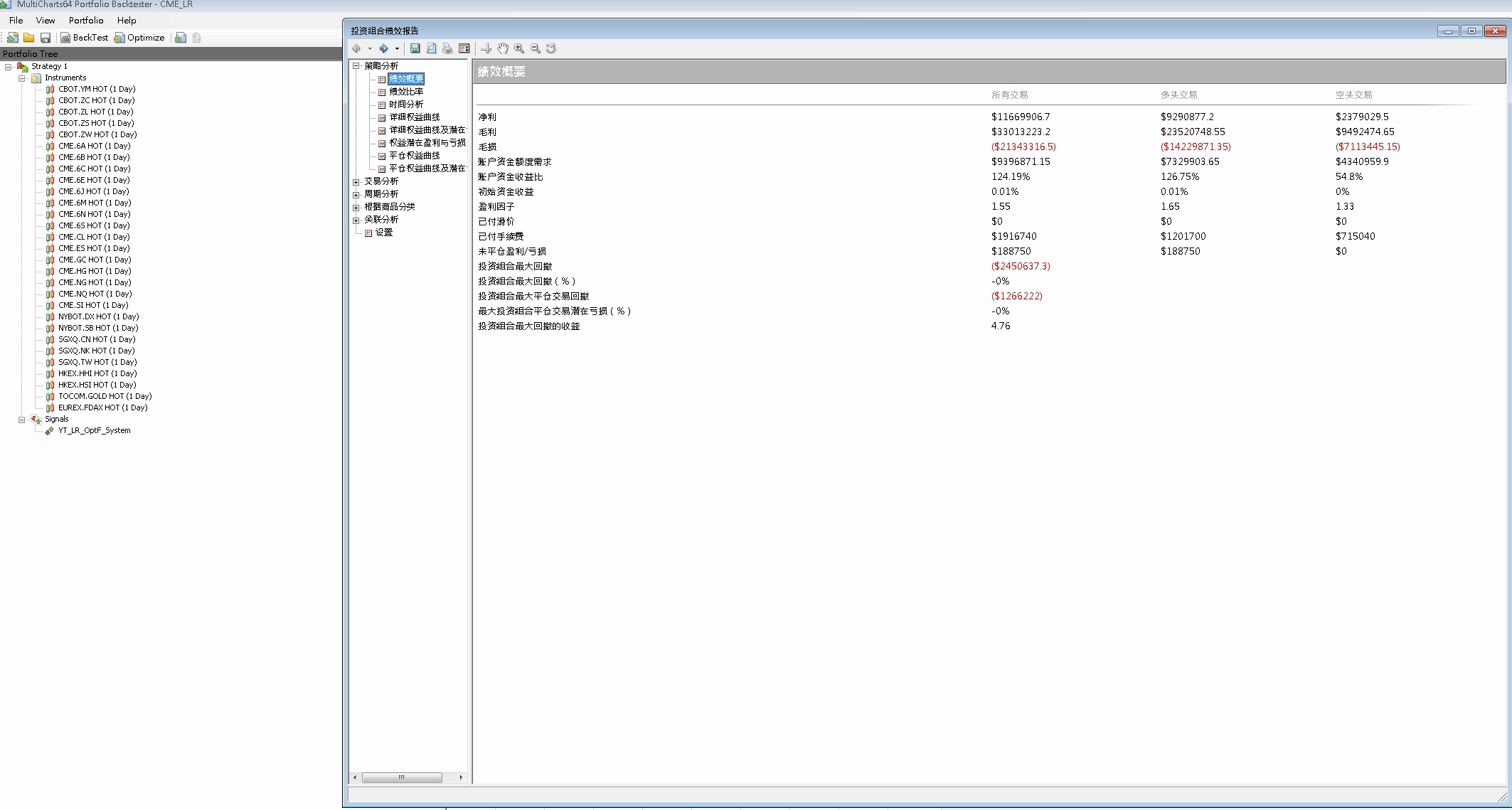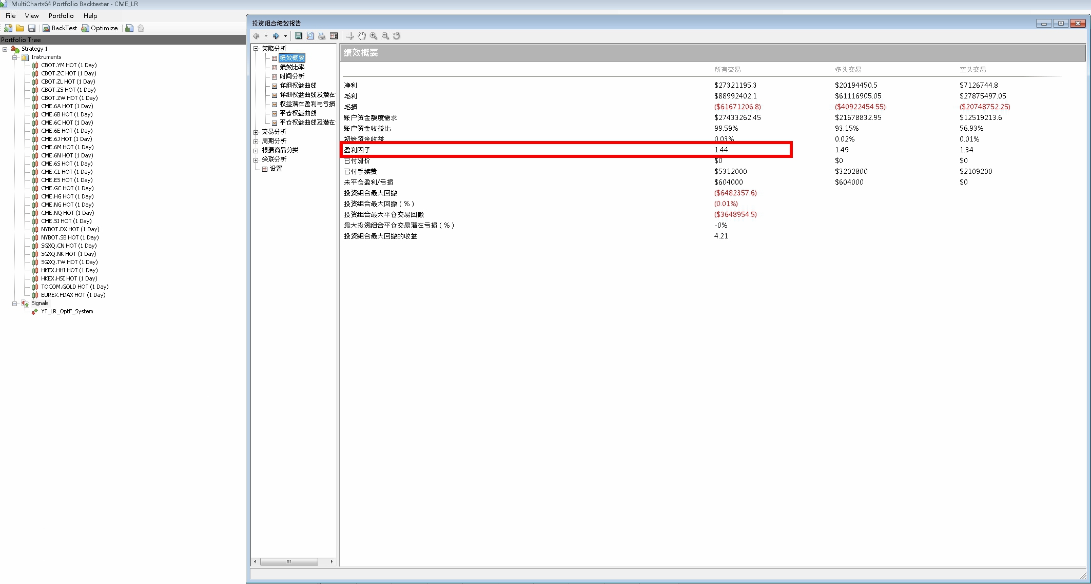 不囉嗦,直接掛入數十個海外期貨商品(獨立樣本空間),即可取得該策略型態大量的測試樣本,近十年 七千多筆 交易事件(已透過 RiskParity 模組對每筆交易進行風險平價)