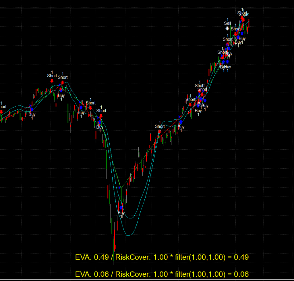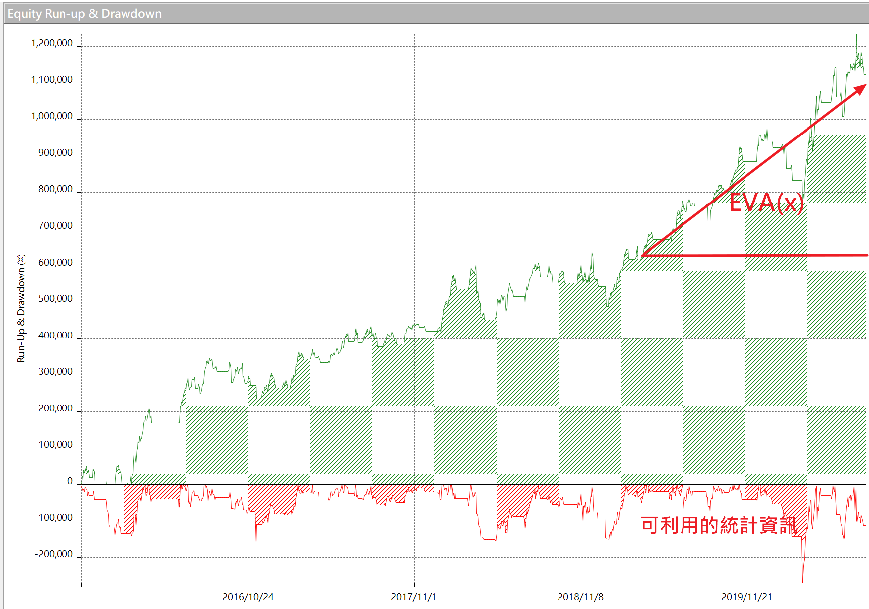 不過這裡要特別提醒的是,上面老巴其實話裡已經告訴我們"優質的商品",股神靠基本面來判斷商品的優質程度,我們做量化的則靠統計(評價)。只要透過EVA(x)作為基礎防火牆,確認動能(期望值)向上,我們才可以放心作這樣均值回歸的風險資金配置。如果沒有EVA(x) 這層防火牆,慎防變成惡名昭彰的馬丁格爾。