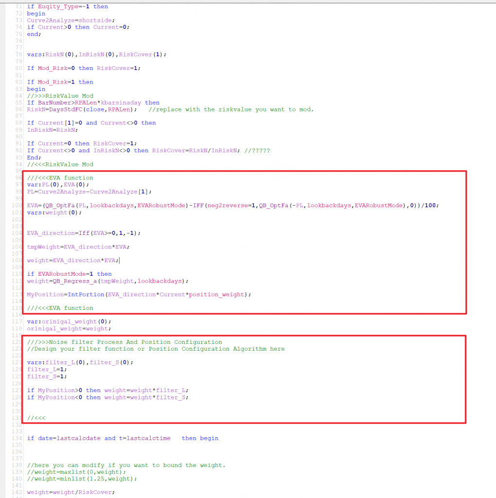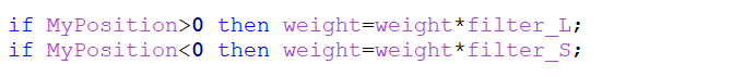 如果把這個濾鏡從策略裡改移到行車電腦的第二個區塊來實作,直接作為EVA(x)的權值,我們就更能貼近原本濾鏡處理噪音的原理,也能作到即使是進場後也能透過評價函數動態控制部位的縮放。