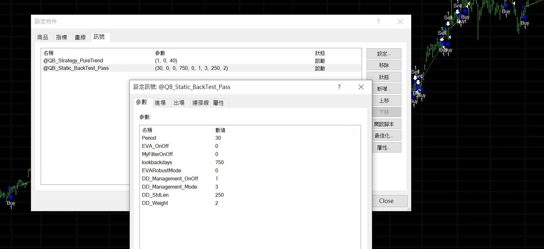 (註:@QB_Srategy_PureTrend_GetDMM中有新增一個div參數,如果想直接使用B圖表下單的同學,可透過div除數將口數調整到你想要的規模)